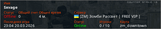 Играет на Counter Strike 1.6 сервере. Страна: УкраинаПервый раз замечен 22:58 20.03.2026