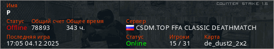 Последний раз был в сети 17:05 04.12.2025 Игрок с таким ником замечен на 34 серверах
