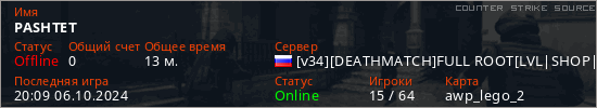 Последний раз был в сети 20:09 06.10.2024 Игрок с таким ником замечен на 15 серверах