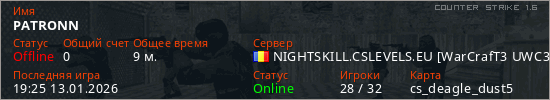 Играет на Counter Strike 1.6 сервере. Страна: РумынияПервый раз замечен 00:37 13.01.2026