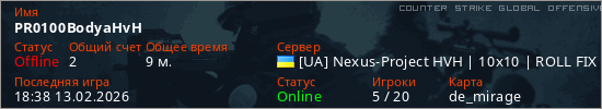 Играет на Counter Strike Global Offensive сервере. Страна: УкраинаПервый раз замечен 01:40 13.02.2026