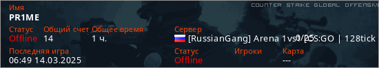 Играет на Counter Strike Global Offensive сервере. Страна: РоссияПервый раз замечен 03:03 14.03.2025