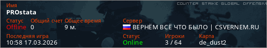 Играет на Counter Strike Global Offensive сервере. Страна: РоссияПервый раз замечен 12:21 14.03.2026