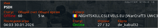 Играет на Counter Strike 1.6 сервере. Страна: РумынияПервый раз замечен 04:01 30.01.2026