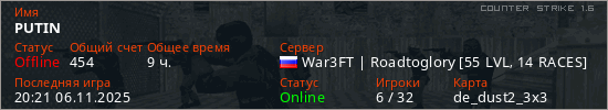 Последний раз был в сети 20:21 06.11.2025 Игрок с таким ником замечен на 40 серверах