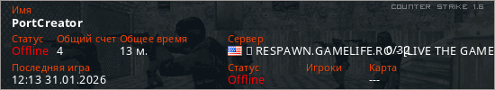 Играет на Counter Strike 1.6 сервере. Страна: СШАПервый раз замечен 22:07 29.01.2026