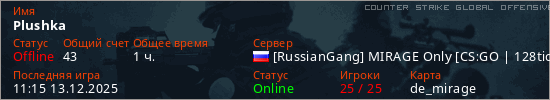 Играет на Counter Strike Global Offensive сервере. Страна: РоссияПервый раз замечен 22:28 27.04.2024