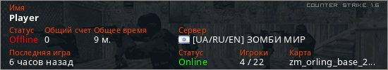 Играет на Counter Strike 1.6 сервере. Страна: ИзраильПервый раз замечен 08:15 20.04.2026
