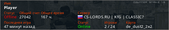Последний раз был в сети 3 часа назад Игрок с таким ником замечен на 76 серверах