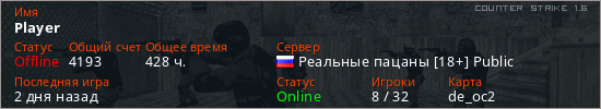 Последний раз был в сети 2 дня назад Игрок с таким ником замечен на 76 серверах