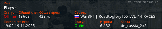 Последний раз был в сети 19:02 19.11.2025 Игрок с таким ником замечен на 76 серверах