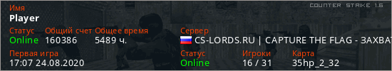 Играет на Counter Strike 1.6 сервере. Страна: РоссияПервый раз замечен 17:07 24.08.2020