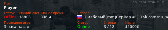 Последний раз был в сети 2 часа назад Игрок с таким ником замечен на 76 серверах