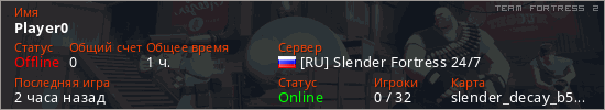 Последний раз был в сети Час назад Игрок с таким ником замечен на 72 серверах