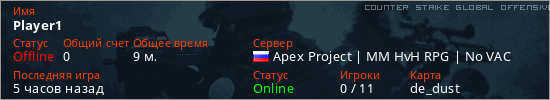 Играет на Counter Strike Global Offensive сервере. Страна: РоссияПервый раз замечен 23:15 16.04.2026