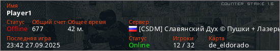 Последний раз был в сети 23:42 27.09.2025 Игрок с таким ником замечен на 76 серверах