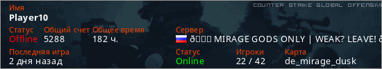Играет на Counter Strike Global Offensive сервере. Страна: РоссияПервый раз замечен 19:05 03.02.2024