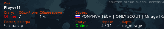 Играет на Counter Strike Global Offensive сервере. Страна: РоссияПервый раз замечен 11:22 27.03.2026