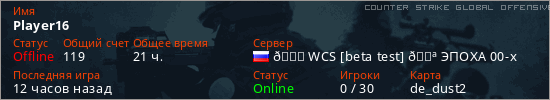 Играет на Counter Strike Global Offensive сервере. Страна: РоссияПервый раз замечен 16:31 04.03.2026