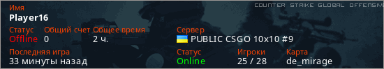 Играет на Counter Strike Global Offensive сервере. Страна: УкраинаПервый раз замечен 17:19 05.03.2026