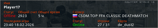Играет на Counter Strike 1.6 сервере. Страна: РоссияПервый раз замечен 03:38 24.08.2023