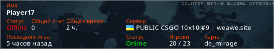 Последний раз был в сети 2 часа назад Игрок с таким ником замечен на 41 сервере