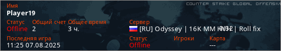 Играет на Counter Strike Global Offensive сервере. Страна: РоссияПервый раз замечен 15:29 05.04.2025
