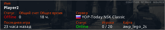 Играет на Counter Strike Source сервере. Страна: РоссияПервый раз замечен 22:00 12.01.2024