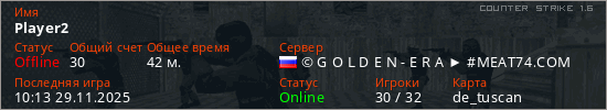 Играет на Counter Strike 1.6 сервере. Страна: РоссияПервый раз замечен 03:52 12.06.2023