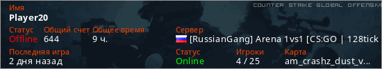 Последний раз был в сети 2 дня назад Игрок с таким ником замечен на 33 серверах