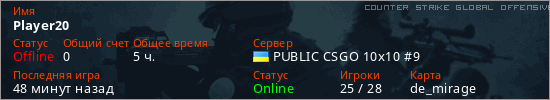 Последний раз был в сети 50 минут назад Игрок с таким ником замечен на 38 серверах