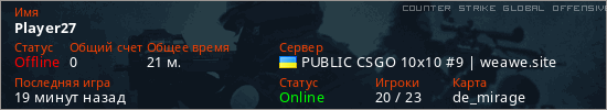 Последний раз был в сети Час назад Игрок с таким ником замечен на 29 серверах