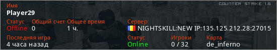 Последний раз был в сети Вчера Игрок с таким ником замечен на 24 серверах