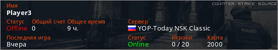 Играет на Counter Strike Source сервере. Страна: РоссияПервый раз замечен 19:11 11.01.2024