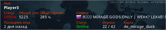 Последний раз был в сети 2 дня назад Игрок с таким ником замечен на 74 серверах