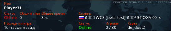 Играет на Counter Strike Global Offensive сервере. Страна: РоссияПервый раз замечен 11:46 05.03.2026