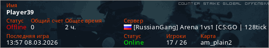 Играет на Counter Strike Global Offensive сервере. Страна: РоссияПервый раз замечен 12:33 06.03.2026