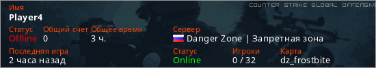 Играет на Counter Strike Global Offensive сервере. Страна: РоссияПервый раз замечен 21:59 20.05.2025