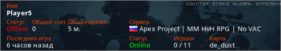Последний раз был в сети 3 часа назад Игрок с таким ником замечен на 80 серверах