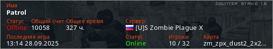 Последний раз был в сети 13:14 28.09.2025 Игрок с таким ником замечен на 4 серверах