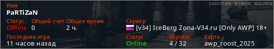 Играет на Counter Strike Source сервере. Страна: РоссияПервый раз замечен 11:25 06.12.2025