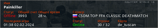 Играет на Counter Strike 1.6 сервере. Страна: РоссияПервый раз замечен 20:49 11.11.2019