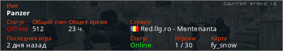 Играет на Counter Strike 1.6 сервере. Страна: РумынияПервый раз замечен 23:35 25.11.2022