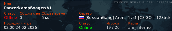 Играет на Counter Strike Global Offensive сервере. Страна: РоссияПервый раз замечен 01:50 24.02.2026