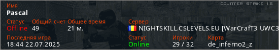Последний раз был в сети 18:44 22.07.2025 Игрок с таким ником замечен на 17 серверах