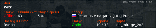 Последний раз был в сети Вчера Игрок с таким ником замечен на 14 серверах
