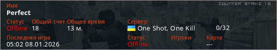 Играет на Counter Strike 1.6 сервере. Страна: УкраинаПервый раз замечен 02:40 08.01.2026