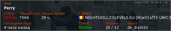 Играет на Counter Strike 1.6 сервере. Страна: РумынияПервый раз замечен 20:54 27.01.2025