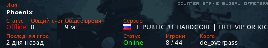Играет на Counter Strike Global Offensive сервере. Страна: РоссияПервый раз замечен 07:15 20.11.2025