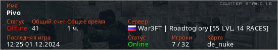 Играет на Counter Strike 1.6 сервере. Страна: РоссияПервый раз замечен 17:38 04.07.2022